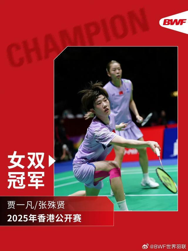 据人民日报消息,9月14日,世界羽联世界巡回赛中国香港公开赛展开5个单项决赛争夺。在刚刚结束的女双决赛中,中国队组合贾一凡/张殊贤以总比分2-0战胜日本队组合岩永玲/中西贵映,夺得冠军。