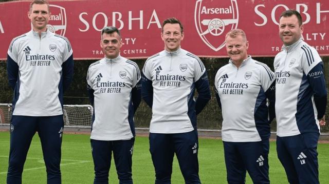 9月19日讯 阿森纳官方消息,大卫-霍斯曼(左起第二)出任俱乐部职业发展阶段精英球员发展教练。
