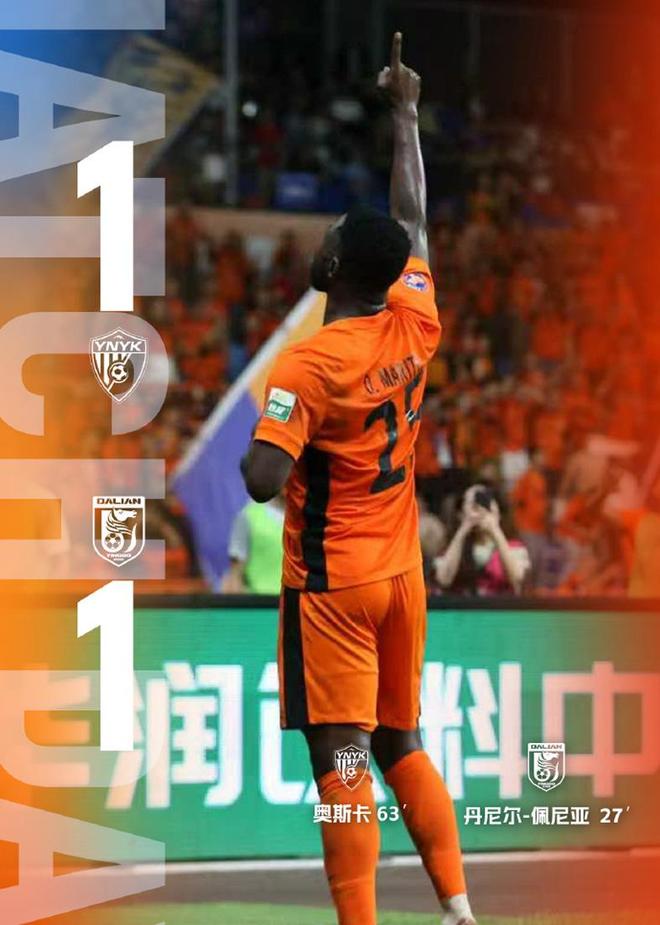 第64分钟,唐淼右路底线附近传门前,英博中卫失位,奥斯卡头球破门!玉昆将比分扳为1-1!