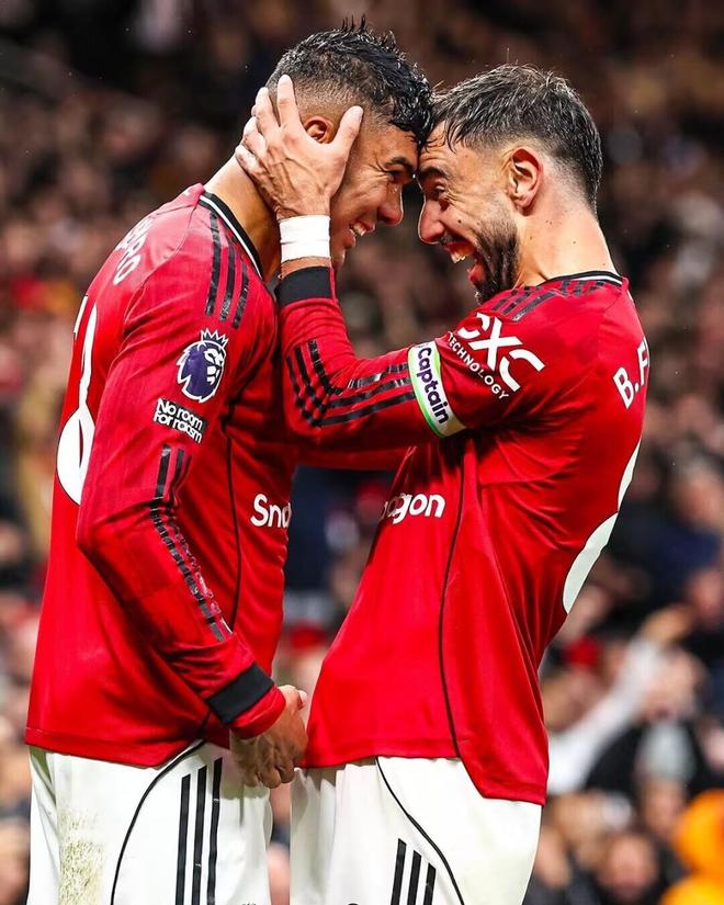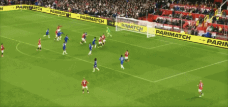 第14分钟,马兹拉维右路传中,多古头球摆渡,B费门前抢点破门,VAR认定不越位,1-0!曼联取得领先。
