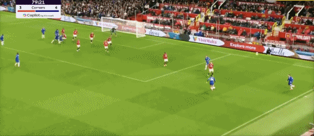 第83分钟,里斯-詹姆斯后场失误,B费带到禁区前右脚远射,被约根森扑出。