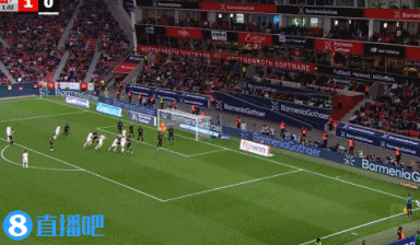 第8分钟,格里马尔多前场右路任意球开入禁区,禁区中路近距离的头球攻门被门将挡出。↓