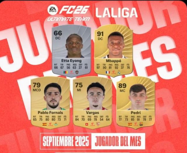 9月24日讯 西甲官方评选出9月份最佳球员候选名单,其中姆巴佩、佩德里领衔,具体如下: