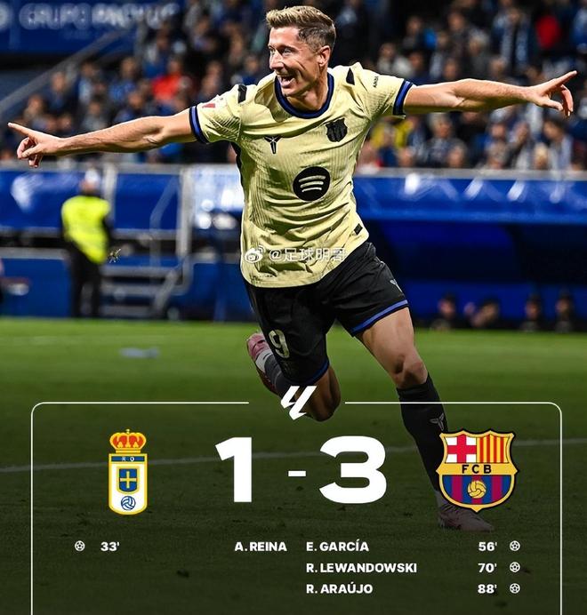 值得一提的是本场比赛莱万替补建功,埃里克-加西亚和阿劳霍各进一球。赛后积分榜方面,皇马积18分领跑,巴萨联赛三连胜积16分位居第二位,奥维耶多积3分第十八位,所以此役巴萨也仅仅是虐菜成功而已。