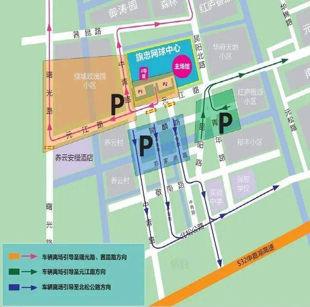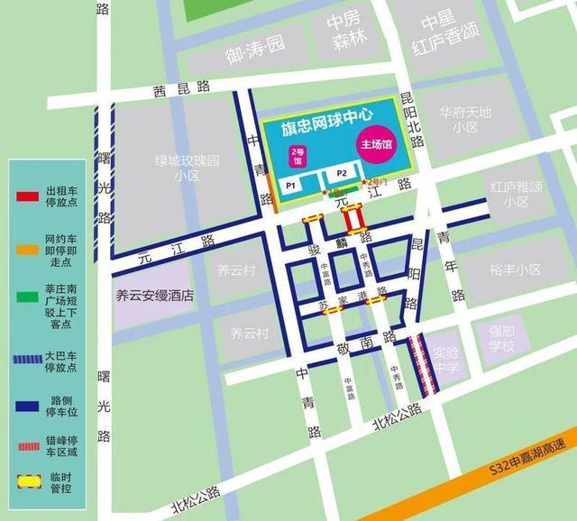 在停车方面,考虑到逐年递增的自驾出行情况,警方会同相关部门落实周边临时停车泊位,除场馆P1、P2两处停车场可以泊车外,警方在元江路(曙光路-中青路)、骏麟路(中青路-青年路)、中秀路(骏麟路-苏家港路段)等区域的路边均新增了停车位。同时,新增中青路(茜昆路-敬南路)、昆阳路(骏麟路-北松公路)两处路边160个临时停车位,共计提供12处停车区域、3020个车位,更好满足市民停车需求。