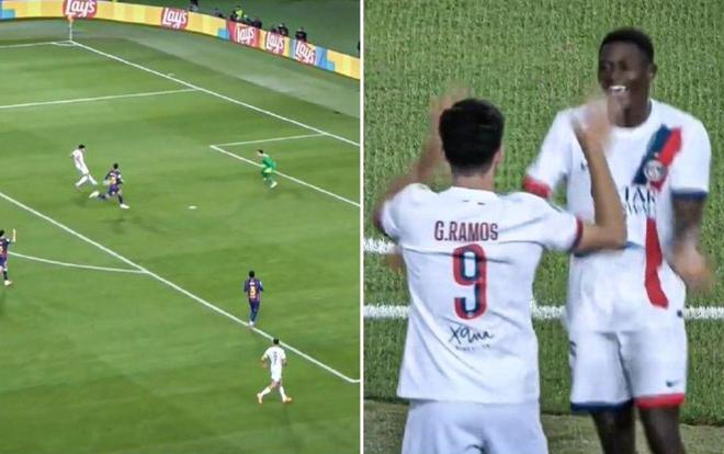 第19分钟,亚马尔抢断,巴萨打反击,拉什福德随后传中,费兰跟进铲射得手,巴萨1-0领先。第38分钟,巴黎也打出反击,门德斯左路狂奔,助攻马尤卢射门得分,1-1!