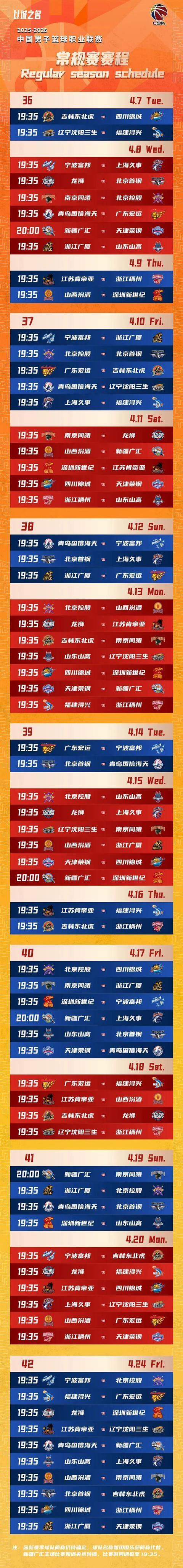 时间安排方面CBA25-26赛季常规赛会在12月12日打响,揭幕战是广厦男篮对阵山西男篮。该开赛时间要比上赛季足足晚了2个月,24-25赛季常规赛的开赛时间是10月12日。