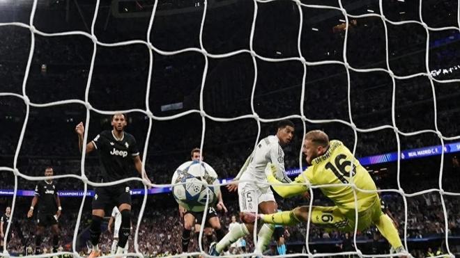 终于,在凌晨的都灵安联球场,机会来了。当维尼修斯的射门击中立柱弹出的一瞬间,贝林厄姆如猎豹般冲入禁区,冷静补射破门!这一刻,仿佛是他过去几个月沉默等待的总爆发——他在向世界宣告:我回来了,而皇马的未来,依然围绕着我转动。