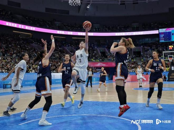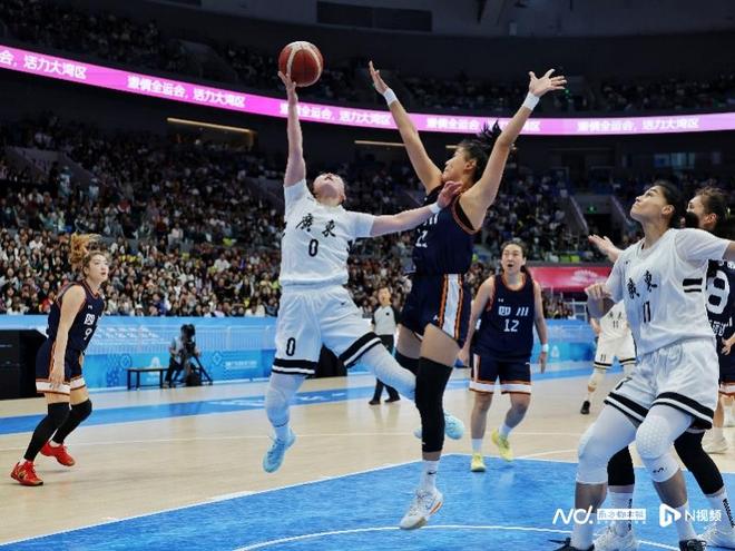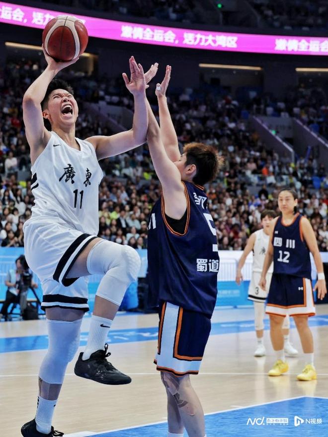 武桐桐在比赛中。决赛中,广东女篮在主场球迷的助威声中更快进入状态,以26比19领先7分结束首节。第二节开场后,四川队利用广东队失误增多和命中率较低,将比分追至28平。之后双方比分交替上升,广东队以43比39结束上半场。第三节,虽然双方比分一直咬得很紧,但广东女篮仍以3分优势进入第四节。末节比赛中,虽然四川队一度将比分追至59平,但广东女篮打出一波11比0的小高潮将分差拉开,并最终将胜利拿下。11月12日晚,在十五运会男篮五人成年组的决赛中,广东队时隔12年再次将全运会男篮分量最重的那块金牌收入囊中。如今,广东队又将全运会女篮分量最重的那块金牌摘下。采写:南都N视频记者 汪雅云 摄影:南都N视频记者 黎湛均