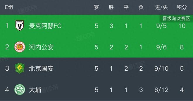 - 亚冠 | 亚冠积分榜,北京国安12遭河内公安逆转,提前一轮出局