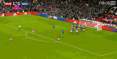 第45+4分钟,曼联左侧角球机会,B费主罚开到后点,卡塞米罗抢点头槌破门,曼联2比1再次领先。