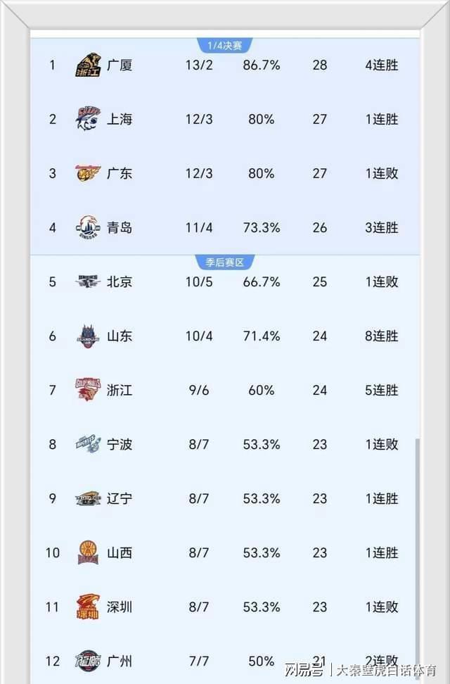 - CBA | CBA新排名!广厦霸榜,上海山东浙江强势崛起,辽晋有望改变颓势